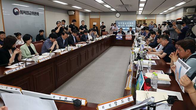 근로자위원인 이미선 민주노총 부위원장은 "심의 촉진 구간 철회를 계속 요청했지만 받아들여지지 않았다"면서 "민주노총은 이 구간 안에서는 결정이 어렵고 받을 수가 없어 그런 입장을 밝히고 나왔다"고 밝혔습니다.