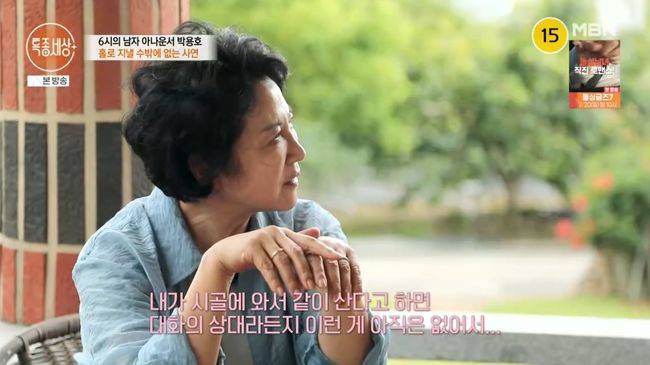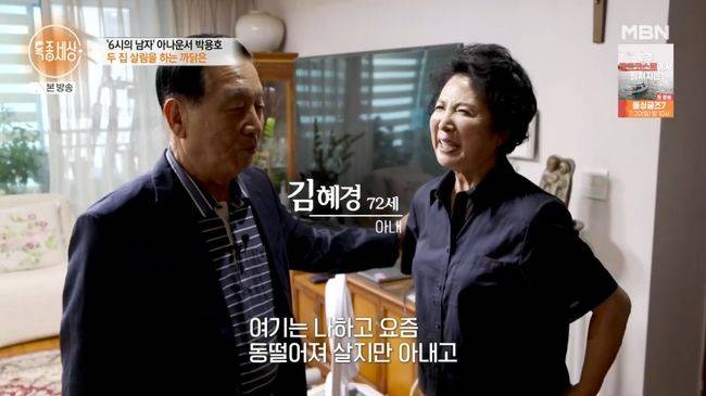 박용호의 아내는 일과 살림, 둘째 아들까지 감당하고 있었다. 아내는 “혼자 사시는 건 죄송하지만 내가 여기서도 할 일이 있고 많으니까 아직은 혼자 잘 견디시고 어떤 때는 제가 못 해드리면 그런건 스스로 하시더라”고 말했다. 박용호는 “얼마 남지 않은 이 노후를 편안하게 안정적으로 행복하게, 짧은 기간을 그렇게 살다가 저세상으로 가야한다고 하는데 그거에는 공감하지만 당장은 해답이 없다”고 말했다.