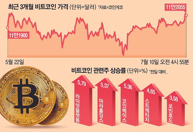 “그때라도 사라고 했제”…한달반만에 최고가 갈아치운 비트코인, 관련종목도 쑥쑥