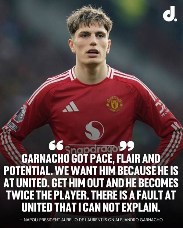 오늘날 나폴리가 가르나초를 원한다. 매체에 따르면 나폴리 회장 아우렐리오 데 라우렌티스는 가르나초에 대해 “가르나초는 스피드, 창의성, 잠재력을 모두 갖춘 선수다. 하지만 우리가 그를 원하는 이유는 그가 맨유 소속이기 때문이다. 맨유를 떠나면 그는 두 배는 더 나은 선수가 된다. 맨유에는 설명할 수 없는 결함이 있다”라고 주장한 바 있다.
