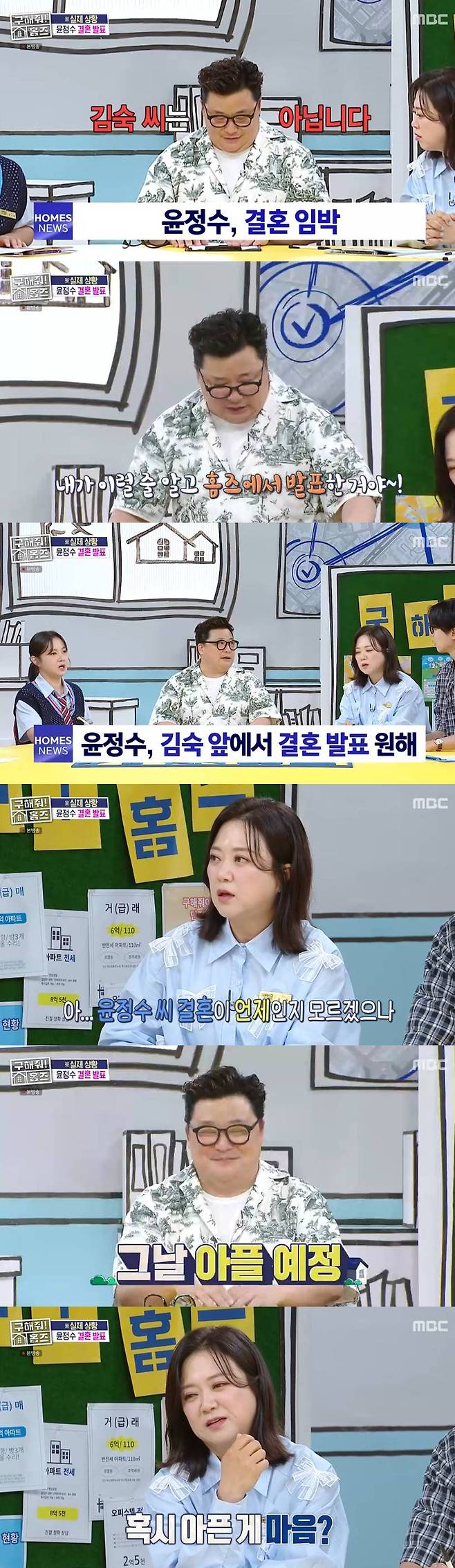 개그맨 윤정수가 김숙이 MC로 있는 프로그램에서 결혼을 발표한 이유를 전했다.