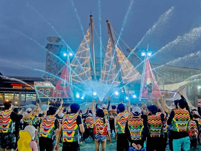 지난해 새롭게 선보인 '웨이브 스테이지'에는 50여개의 워터 이펙트 장치가 관객을 향해 물 대포를 쏘아 시원한 물을 맞으며 공연을 만끽할 수 있다.