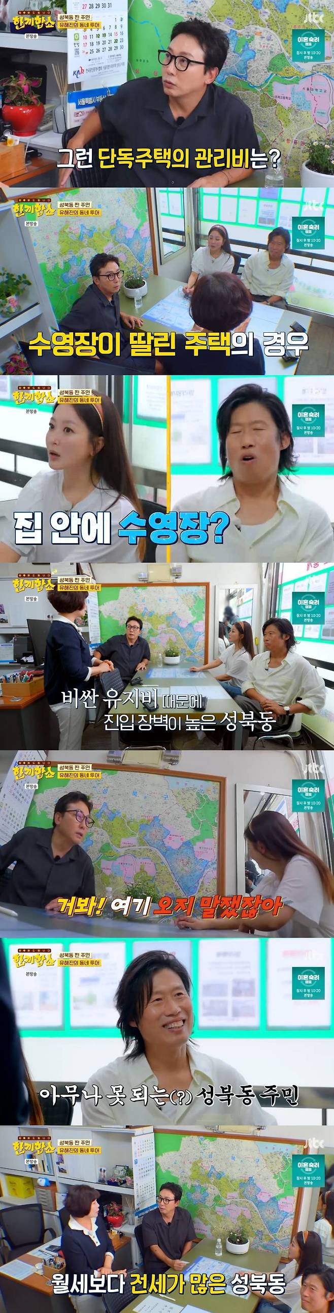 이어 탁재훈과 김희선, 유해진은 부동산에 들러 주변 시세를 둘러봤다. 공인중개사는 성북동 거래 가격에 대해 "고급 빌라는 25억, 단독주택은 45억 이상"이라고 전해 놀라움을 안겼다.