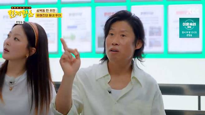 10일 첫 방송된 JTBC '한끼합쇼'에서는 MC 김희선, 탁재훈과 국민배우 유해진이 출연했다. ‘성북동 주민’ 유해진은 동네 단골집과 명소를 소개하는 등 ‘특별 가이드’로 함께했다. 지난 2023년 유해진이 서울 성북구 성북동에 위치한 단독주택을 45억 원에 매입했다는 소식이 전해진 바 있다.