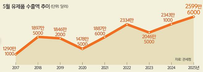 정부의 R&D를 통해 만들어진 한국의 고품질·고기능 유제품은 세계에서도 각광받는 추세다. 2017년 5월 기준 1290만1000달러에 불과하던 유제품 수출액은 증가세를 이어가 2022년 5월 2000만달러를 돌파했고, 올해 5월에는 2599만6000달러로 8년 전 수출액의 2배를 상회하고 있다. 비피더스균을 활용한 유아 제품은 그 진가를 인정받아 현재 베트남 등 해외시장에까지 진출한 상태다.