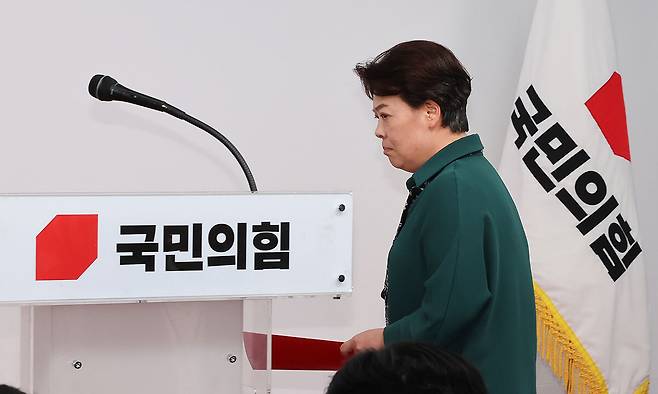| 비장한 혁신위장 국민의힘 윤희숙 혁신위원장이 10일 서울 여의도 중앙당사에서 제1차 혁신위 회의 결과를 브리핑하기 위해 입장하고 있다. 연합뉴스 |