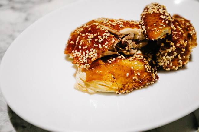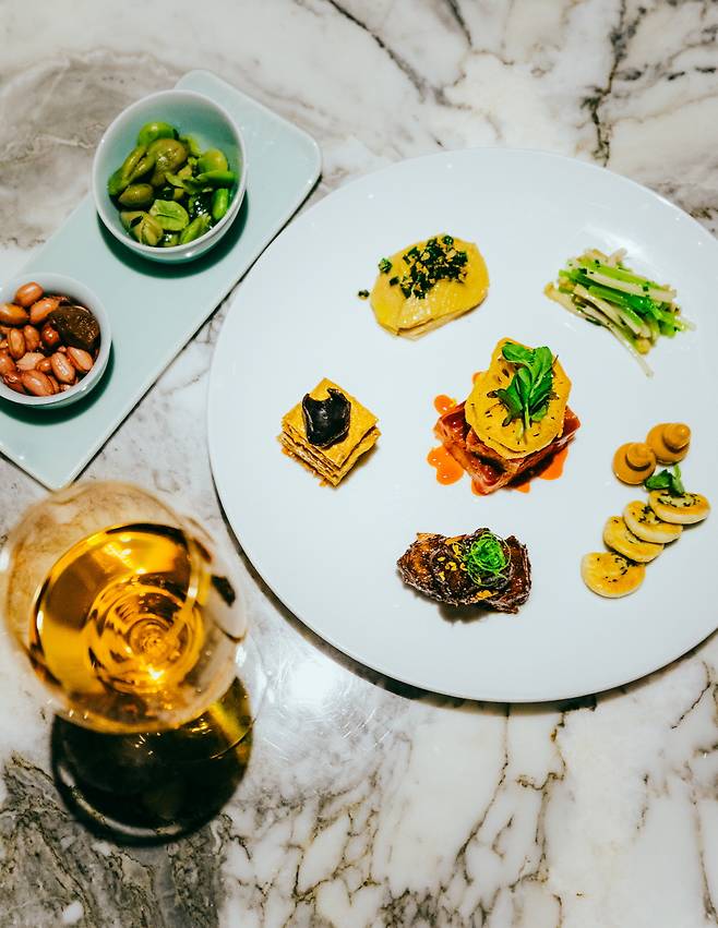인테리어는 전체적으로 어두운 우드톤으로 꾸며져 있고, 곳곳에 호텔에서 직접 셀렉한 빈티지 도자기와 유리잔들을 만나볼 수 있다. 추천 메뉴로는 하쿠슈 12년에 드라이 에이징 한 스테이크. 에이징을 하며 고기에 자연스럽게 스며진 위스키는 스테이크의 육질을 더욱 부드럽게 만들며, 은은한 풍미를 자아낸다.