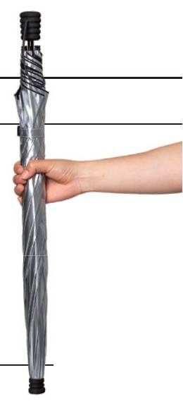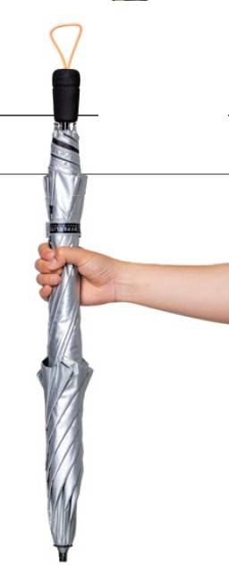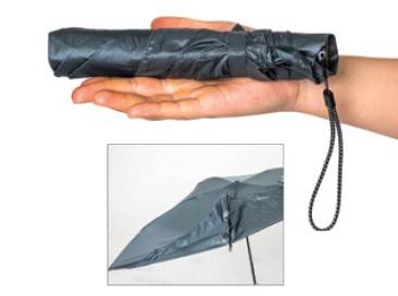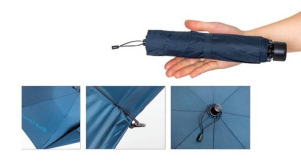 한줌에 들어오는 초경량, 초소형 우산이다. 본체 중량이 70g밖에 되지 않는 놀라운 무게를 자랑한다. 500ml 물병보다 작은 크기로 가방에 있는지 조차 모를 정도이다. 다섯 개의 살로 만들어진 이 작은 우산은 살이 반으로 접히도록 설계되어 작게 패킹된다.