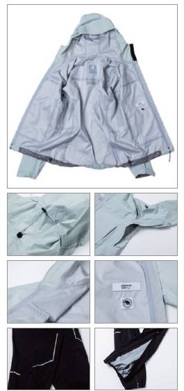 재킷에 도레이사의 더미작스Dermizax 필름이 사용됐다고 하네요. 고어텍스 XCR과 성능이 비슷하다고 알려져 있어요. 방수 성능은 좋을 것 같아요. 하지만 재킷의 주머니가 많네요. 실제로 이 주머니들을 사용할까 의문이군요. 바지도 흥미로워요. 이것도 나일론 3레이어 원단으로 제작했다고 하네요. 케일에서 새로 개발한 원단이에요. 겉보기엔 퍼텍스 원단과 비슷하군요. 바지 역시 가벼워서 트레일러닝 용으로 제격이겠어요.
