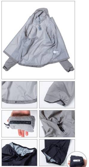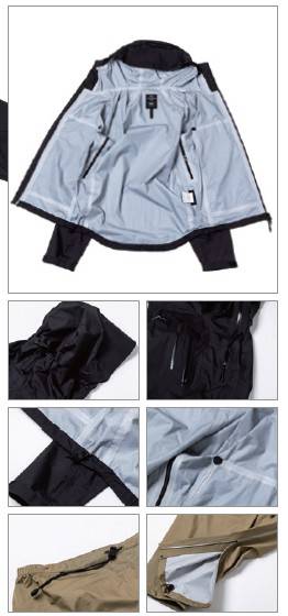 와! 이건 진짜 놀라워요. 너무 가벼워요. 재킷과 바지 모두 일반 바람막이 같기도 해요. 퍼텍스 쉴드 원단으로 제작돼 방수 성능은 일단 의심하지 않아도 될 것 같군요. 하지만 너무 얇아서 내구성이 어떨지 궁금하네요. 바지도 놀랍군요. 재킷과 똑같이 얇고 가벼워요. 아! 무게를 줄이기 위해서 밑단 조임을 고무줄 대신 벨크로를 적용시켰군요! 이 제품 정말 궁금해요.