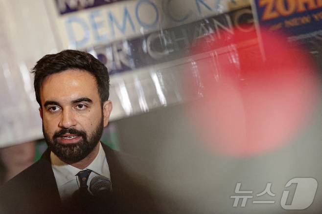 (뉴욕 로이터=뉴스1) 윤다정 기자 = 10일(현지시간) 조란 맘다니 뉴욕시장 후보가 미국 뉴욕에서 열린 기자회견에서 발언하고 있다. 2025.07.10.