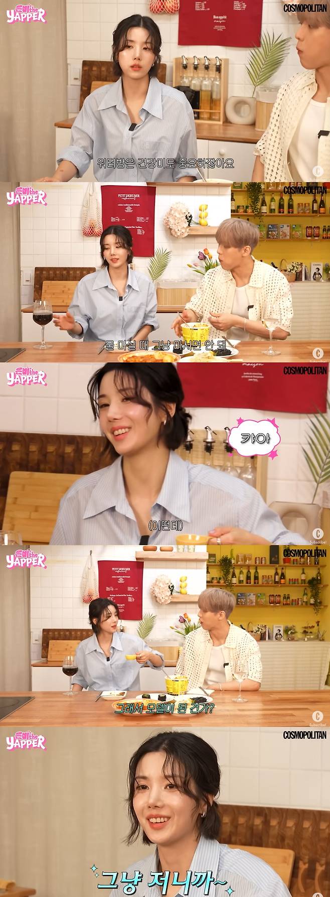 권은비는 '워터밤 꿀팁'을 묻는 질문에 "있다. 물 마실 때 그냥 마시면 안 되고 좀 광고처럼 마셔야 한다"며 물 마시기를 재현했고, 이민혁은 "그래서 모델인가"라며 감탄을 표했다.