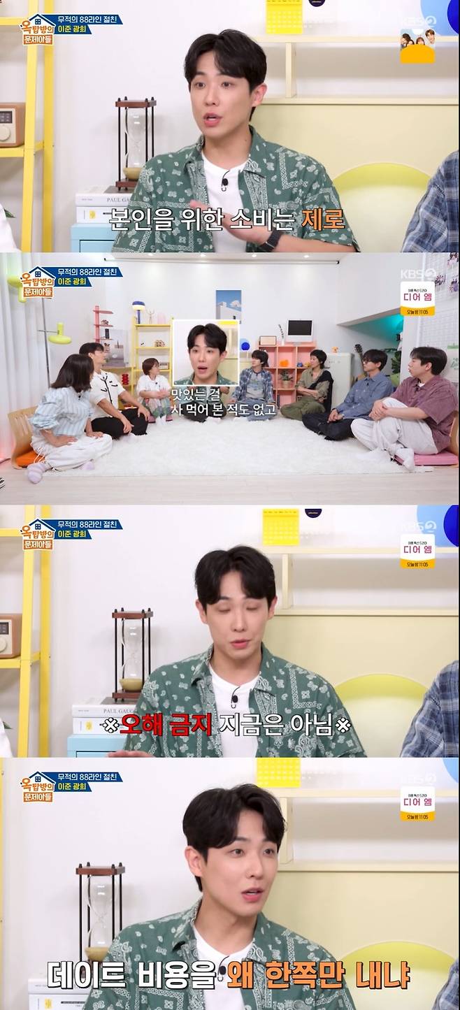 이에 양세찬은 데이트 비용은 어떻게 냈는지를 궁금해했고, 이준은 "예전에 제가 발언 잘못했다가 진짜 엄청 욕 먹은 적이 있다"면서 과거 데이트 비용을 왜 남자만 내냐고 말해 화제가 됐던 것을 언급했다.