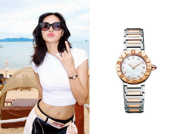 화이트 크롭트 티셔츠로 간결하게 완성한 리사의 바캉스 룩은 그 자체로도 스타일리시하지만, 시계가 룩에 마지막 터치를 더했다. 그녀가 선택한 시계는 불가리의 시그니처 '불가리 불가리’. 브랜드 로고가 각인된 로즈 골드 베젤에 자개 다이얼, 다이아몬드 인덱스가 어우러져 심플한 룩에 고급스러움을 불어넣는다. 리사처럼 쿨한 무드로 연출하거나, 포멀한 셔츠 스타일에 매치해도 찰떡궁합!