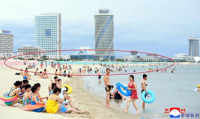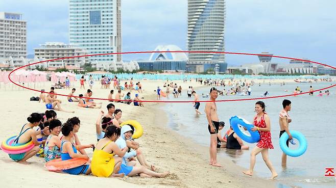노동신문 첨부한 사진 보니 그런데, 노동신문이나 조선중앙통신이 기사와 함께 첨부한 사진들을 보면 관광객 수가 그리 많지 않다는 생각을 하게 됩니다. 북한 매체들이 해변에서 물놀이를 즐기는 관광객들의 여러 모습을 사진에 담았지만, 자세히 살펴보면 넓은 해변의 상당 부분은 비어 있는 것을 알 수 있습니다. 관광객들이 없는 것은 아니지만, 하루 수용인원 4만여 명을 자랑하는 관광단지의 규모에는 턱없이 못 미치는 수준으로 보입니다.