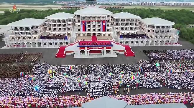 지난달 24일 강원도 원산 명사십리 바닷가에서 김정은 총비서가 참석한 가운데 원산갈마 해안관광지구 준공식이 열렸습니다. 2016년 무렵 공사를 시작한 뒤 대북제재와 코로나19 등으로 인한 자재수급 어려움 등으로 수차례 완공이 연기된 뒤 근 10년 만에 공사를 마무리 지은 것입니다. 준공식에는 김정은과 딸 김주애뿐 아니라 부인 리설주가 18개월 만에 등장해 눈길을 끌기도 했습니다.