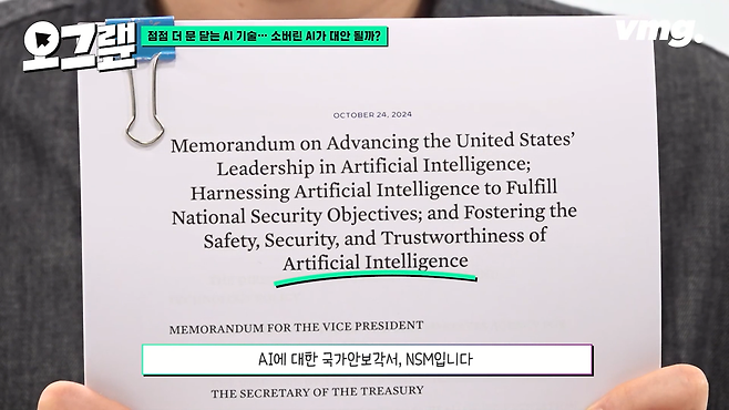 이 문서는 작년 10월에 바이든 대통령이 발표한 AI에 대한 국가안보각서, NSM입니다. NSM은 안보 관련 지침을 미국 정부 내 각 부처에 전달하는 공식 문건인데요, 과거에 핵전략 사용과 확산 방지 관련해서 진행되던 문건입니다. 이 문서에서 미국 정부는 앞으로 AI 기술을 핵무기와 같은 국가 전략 자산으로 간주하겠다고 밝혔습니다. 본격적으로 미국이 자국의 AI 기술을 정부가 나서서 지원하고, 통제하겠다는 것이죠. 마치 핵무기처럼 말이죠.