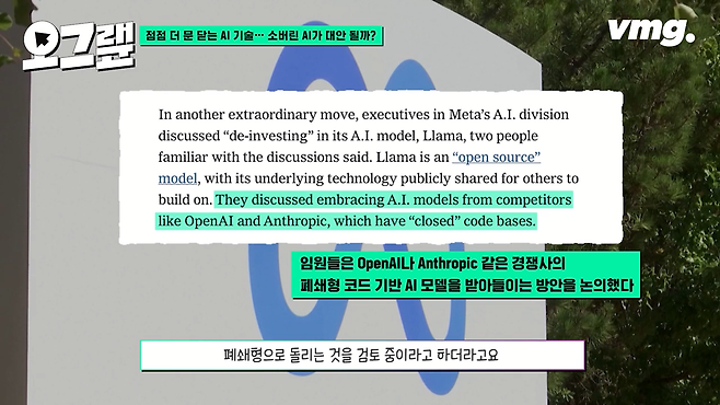 게다가 돈을 내지 않고도 대중들에게 공개하고 있는 오픈소스 AI 모델들도 충분히 경쟁력이 있는 만큼 이런 모델들을 활용해서 개발하는 게 훨씬 이득이라는 얘기도 나오고 있어요.