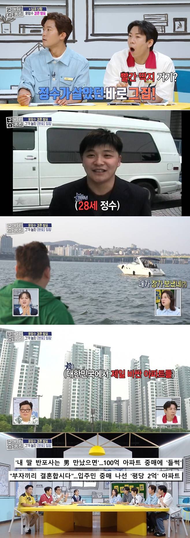 '몇 살 때 (반포 집을) 샀냐'는 질문에 윤정수는 "한 20년, 25년 전에 샀다. 그때 한 5~6억 원이었다"고 답했고, 생애 첫 매매가 반포 집이라는 사실에 모두가 놀라움을 표했다.