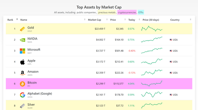 비트코인은 이제 2.5%만 더 오르면 아마존의 시가총액을 넘어서고 전세계 5위 자산으로 올라설 수 있다.