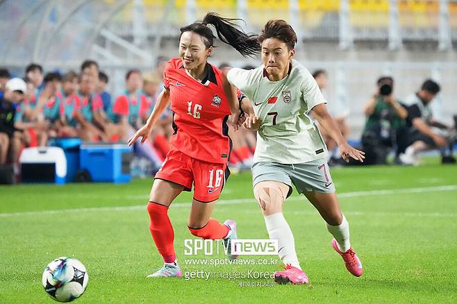 90분 내내 팽팽했다. 선제골은 중국 몫이었다. 전반 15분 한국 수비수 김혜리(우한)가 진쿤의 크로스를 헤더로 걷어냈지만 이 공이 페널티 아크 앞에 있던 야오웨이에게 흘렀고 야오웨이가 강력한 왼발 중거리포로 연결, 한국 골대 오른쪽 구석을 출렁였다.