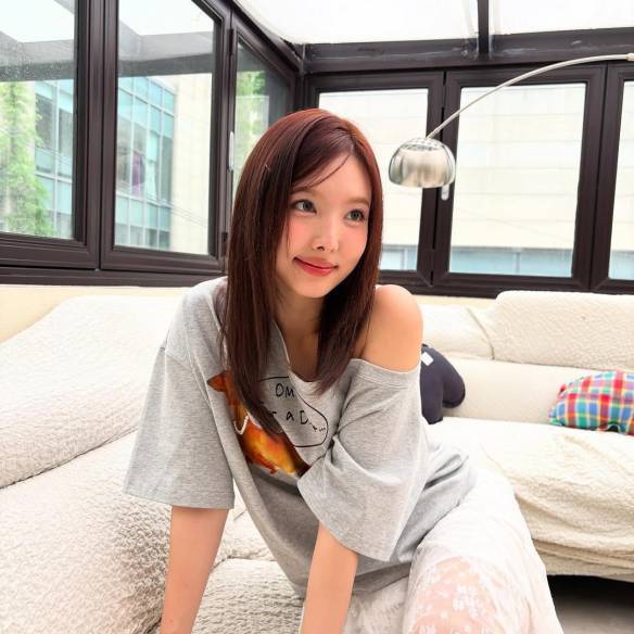 나연의 시스루 치마 스타일링은 상큼함 그 자체! 플로럴 패턴이 더해진 미디 길이의 화이트 시스루 치마가 나연 특유의 러블리한 무드를 한층 살려준다. 시선강탈 강아지 프린팅이 들어간 원오프숄더 그레이 톱은 그녀의 룩에 보는 재미를 더해준다. 실버 포인트의 플랫슈즈와 흰 양말 조합으로 소녀스러운 감성은 배로! 이번 여름 사랑스러운 스타일에 도전하고 싶다면, 나연의 시스루 치마 코디를 눈여겨보자.