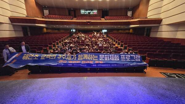 제주 해안초등학교(교장 김남규)는 지난 5일 오후 한라아트홀 대극장에서 교육 3주체(학생·학부모·교직원) 120여명이 참여한 가운데, 문화체험 프로그램으로 연극 '불편한 편의점'을 관람했다.
