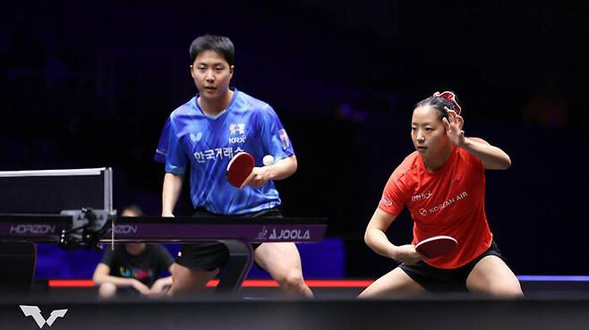 ▲ WTT 미국 스매스 경기를 벌이는 임종훈(왼쪽)과 신유빈