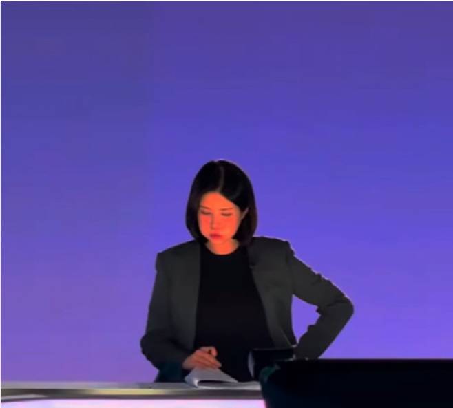 함께 공개된 영상에는 뉴스 시작 전 데스크에 앉아 원고를 검토하는 한 앵커의 모습이 담겼다.