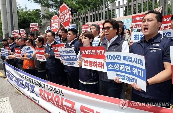 소공연은 또 "현재 최저임금 결정구조 자체에 근본적인 의문을 제기한다"며 "당사자인 소상공인과 상관없는 대기업 노조, 교수 등에 의해 결정되는 비상식적인 구조를 바꿔야 한다"고 주장했다.