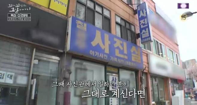 혹시 알겠어? 바로 50년 전 사건 당일에, 오휘웅이 사진을 찾으러 갔던 곳이 칠OO 사진관이거든. 그런데 그 동네에 그 이름 그대로 남아 있는 거야. 우연히 발견한 제작진은 얼마나 놀랍고 반가웠겠어. 만약 그때 그 사장님이 그대로 있다면 오휘웅 가족에 대한 소식도 알고 있지 않을까 싶었지. 하지만 해당 사진관 주인은 이미 오래전 바뀐 상태였어. 결국 사진관에서도 오휘웅 가족의 소식은 듣지 못했어.
