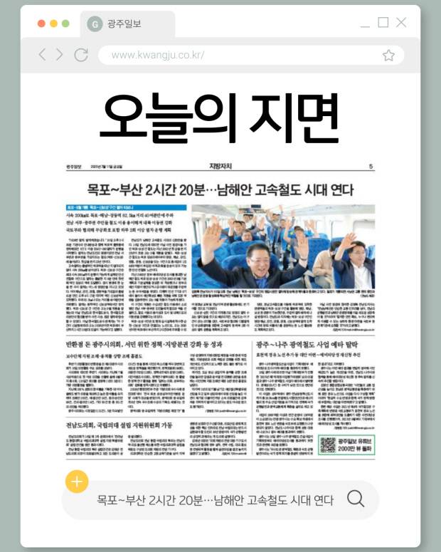 [오늘의 지면] 남해안 고속철도 시대 신호탄, 목포~부산 2시간 20분