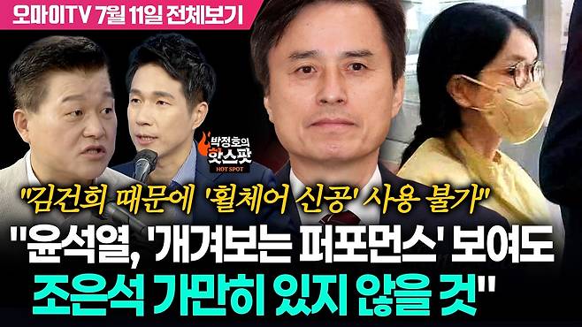 ◎ 박정호 > 지금 보니까 오늘 주진우 기자 같은 경우는 김건희가 어제 서울 아산병원 다녀왔다. 계속 아플 예정이고 기록을 쌓는 중이다 이런 얘기까지 하던데. 여러 가지 고민하겠죠. 어떻게 할지 특검 수사 대비해서.