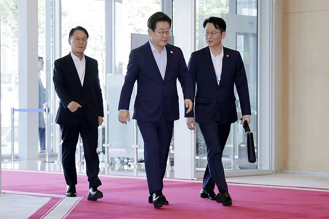 | ▲ 이재명 대통령이 11일 용산 대통령실 본관으로 출근하는 모습을 대통령실이 공개했다. |