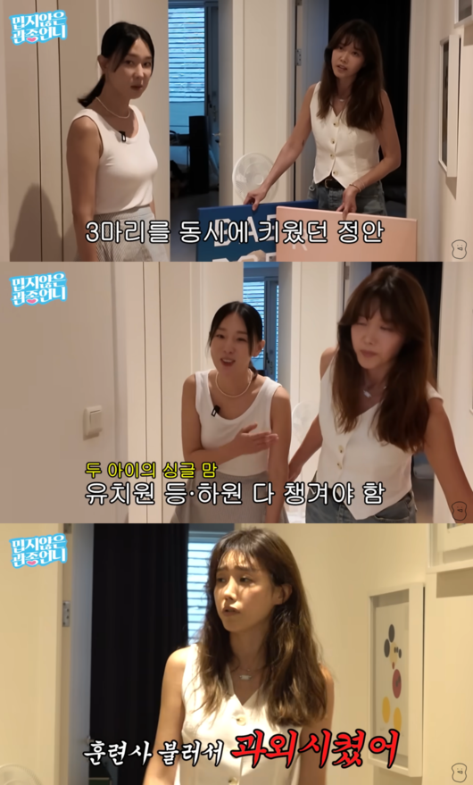 알고 보니 두 마리를 강아지 유치원에 간 상태였다. 채정안은 “7살 유치원 입시 테스트 있지 않냐. 우리 반려견도 테스트 받고 겨우 보냈다”고 했다.