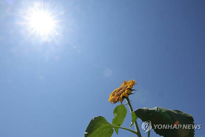 (연천=연합뉴스) 임병식 기자 = 11일 경기도 연천군 호로고루에서 열린 제10회 연천장남 통일바라기 축제에서 해바라기가 햇볕을 향해 피어 있다. 2025.7.11