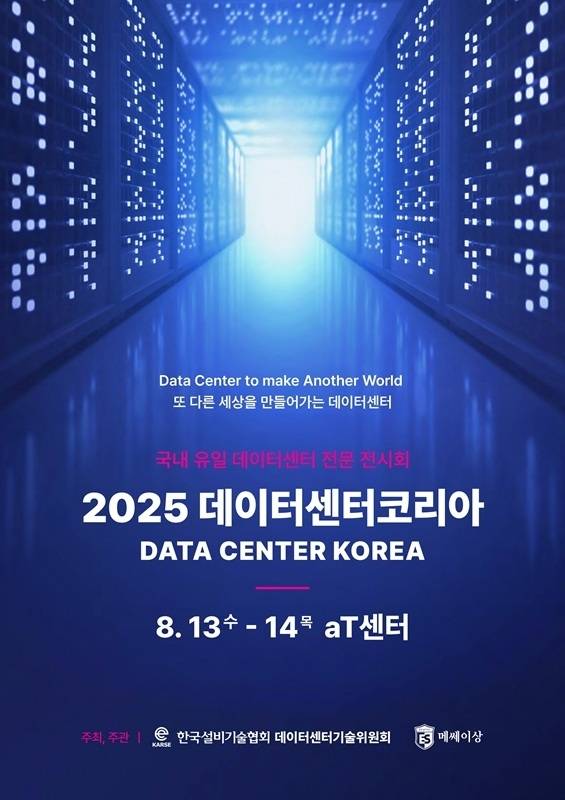 국내 최초의 데이터센터 전문 산업전시회인 '2025 데이터센터코리아(DATACENTER KOREA 2025)'가 오는 8월 13일부터 14일까지 양재 aT센터에서 개최된다.