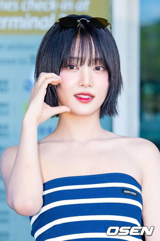 아이들 민니가 출국길에서 포즈를 취하고 있다. 2025.07.11 / rumi@osen.co.kr