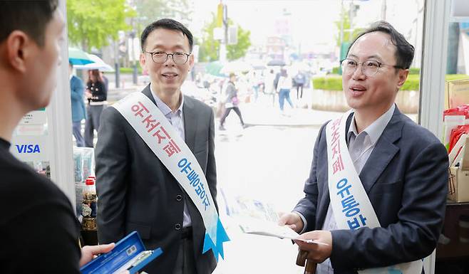 ▲ 한국은행 발권기획팀이 지난 5월 9일 서울 중구 남대문시장에서 '위조지폐 유통방지' 거리 홍보를 하고 있다.