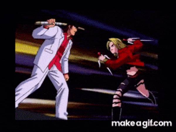 검떠: 사진만 봐도 대단해 보이죠? 공사장 쇠기둥.. 그리고 전봇대.. 그리고 심지어 고장난 자동차도 들어서 던져버립니다. 기존의 여성 캐릭터와는 공식 자체가 다르죠. 주인공 뿐만 아니라 적들도 세기말 감성이 그대로 녹아들어서, 뇌리에 각인이 확 됩니다.