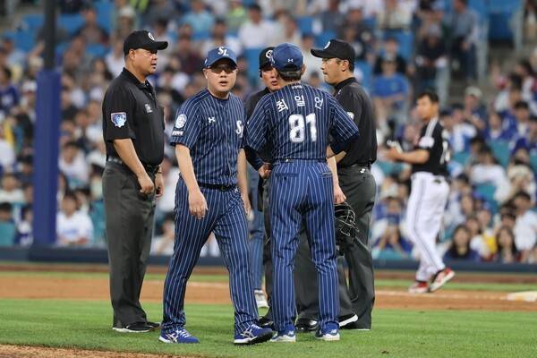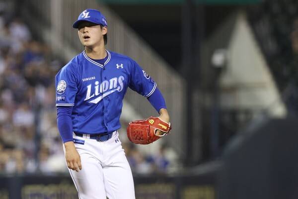 박진만 삼성 감독은 8회부터 마무리 이호성을 투입했다. 믿음직한 불펜 투수가 없는 상황에서 그에게 2이닝을 맡기겠다는 의도였다.