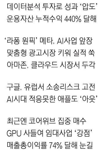 AI 대응력이 주가 갈랐다 애플·구글 한물가고 메타·아마존 선두로