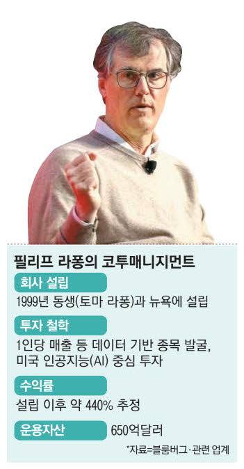 "필리프 라퐁이 투자 돌파구를 마련해주네요. 월스트리트의 '젊은 호랑이'라고 불리는 라퐁의 조언에 따라 인공지능(AI) 관련 빅테크 종목으로 리밸런싱(교체)하는 중입니다." 최근 서울 여의도에서 만난 펀드매니저는 이처럼 말하며 "AI는 이제 시작"이라고 강조했다.