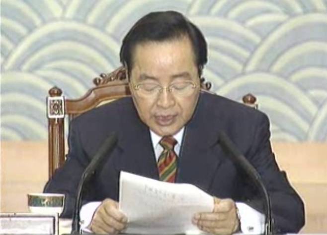| ▲ 8.12 국무회의에서 최창윤 총무처장관이 임시국회 소집요구 제안에 대해 설명하는 모습. |