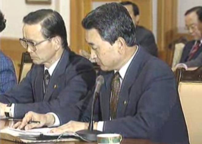 벗은 안경의 다리를 두 손으로 만지작거리던 김영삼은 그쪽으로 눈길을 돌리더니 "네네, 말씀해보세요"라고 말한다. 재무장관과 총무처장관에게 발언 기회를 줄 때는 직함을 호명했던 김영삼은 이때는 그러지 않는다. 예정에 없었던 일이라 그랬던 모양이다.
