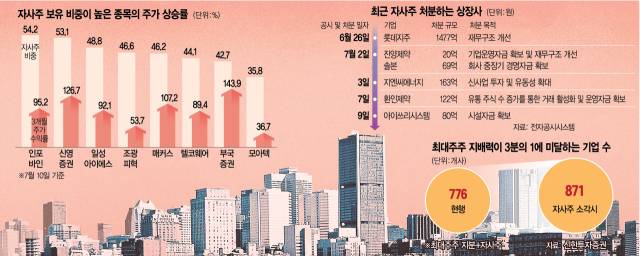 시장에서는 상장사들이 기보유 자사주 처분에 속도를 낼 것으로 보고 있다. 소각 외에 지배권을 강화할 수 있는 우회 처분 방안을 급하게 마련할 것이라는 관측이 나온다. 김종영 NH투자증권 연구원은 “개정안은 7~8월 의견 수렴을 거쳐 9월 정기국회에서 처리될 가능성이 높다”며 “상장사의 자사주 활용 방식에 큰 변화를 가져올 것으로 예상된다”고 했다.
