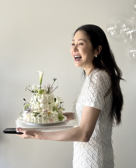 꽃으로 장식된 케이크 위에서, 그보다 더 환한 미소를 짓는 고현정.