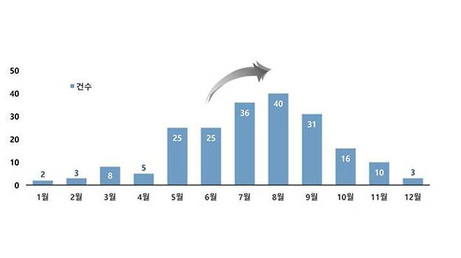 이 중 7~9월 여름철 발생 건수가 107건, 4천542명으로 절반을 웃돈 것으로 분석됐습니다.