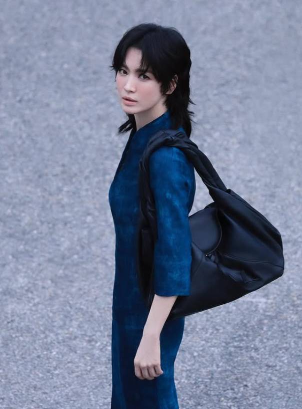 특히, 짙은 네이비 컬러의 롱 드레스에 블랙 백을 매치한 모습에서는 도회적인 세련미와 자신감 넘치는 아우라가 돋보였다. 자연스럽게 흐르는 울프컷 헤어와 절제된 포즈, 그리고 당당한 눈빛이 어우러져 송혜교만의 독보적인 스타일을 완성했다.