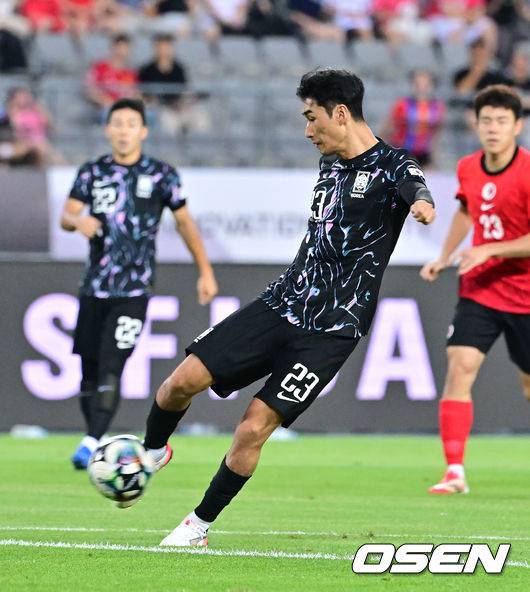[OSEN=용인, 박준형 기자] 11일 오후 용인 미르스타디움에서 2025 동아시아축구연맹(EAFF) E-1 챔피언십(동아시안컵) 한국과 홍콩의 경기가 진행됐다.